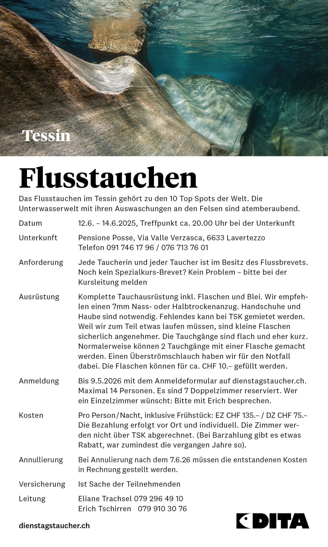 Chlousetouche 2024 Überpünktlich trafen sich bei winterlichen Temperaturen und leichtem Regen 17 DiTa-Taucher beim Eden Beach in Gunten zum diesjährigen…