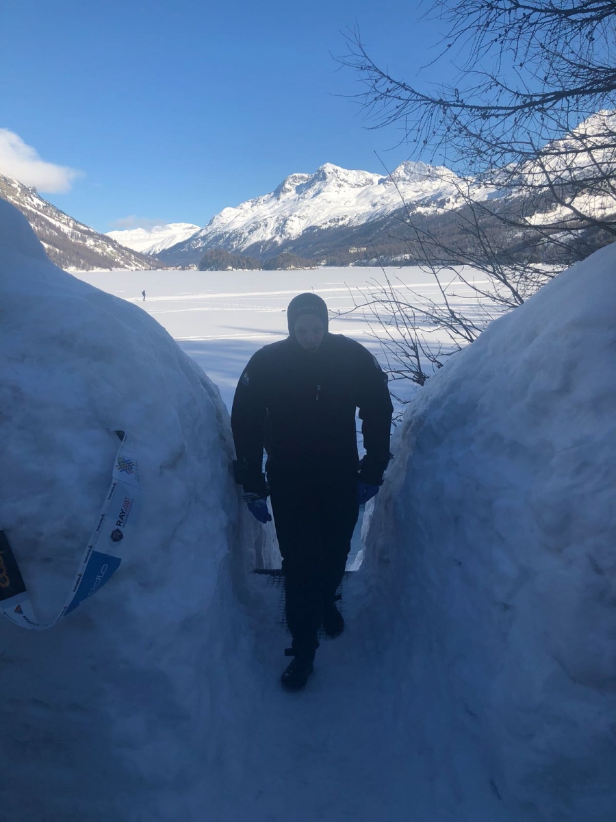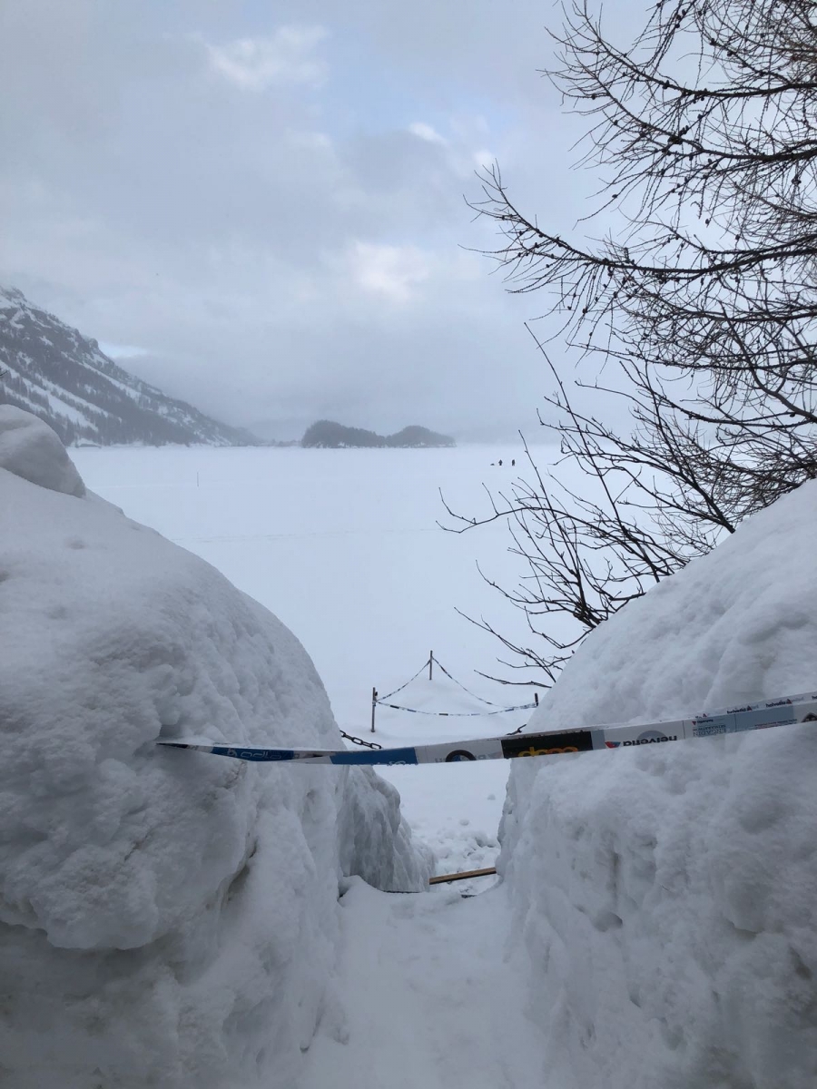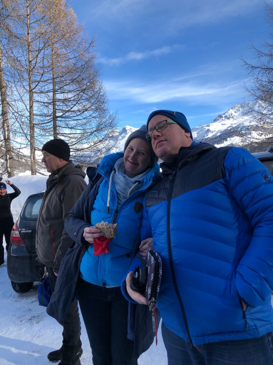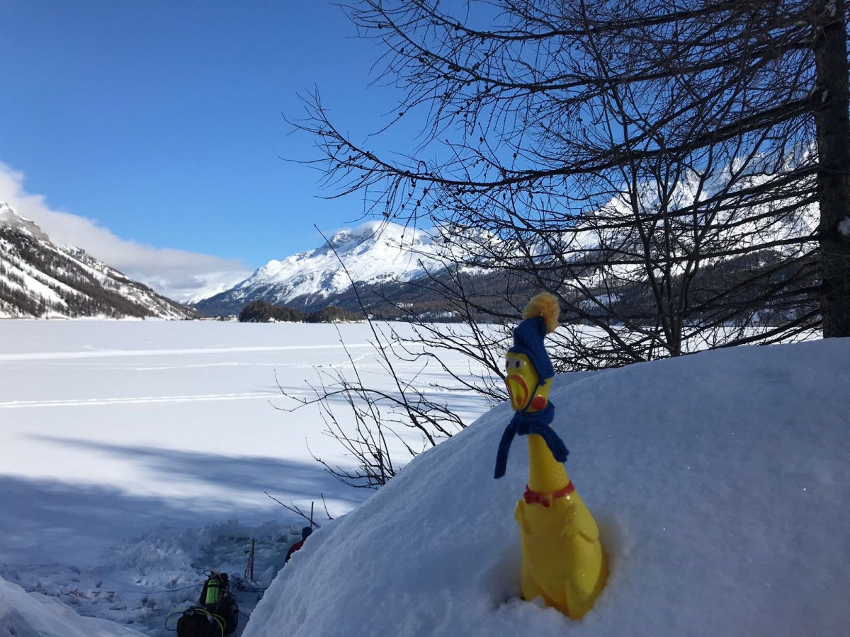 Nach einem reichlichen Frühstück am Samstag ging es nach Plaun da Lej zum Parkplatz Alp Murtaröl. Das Schweizer Fernsehen war bereits mit einem kleinen Team an einem Eis-Loch und drehte für eine DOK-Serie eine Filmsequenz mit anderen Eistauchern. Gegen halb 11 durften wir ebenfalls hinein ins Abenteuer. Für viele war es der erste Sprung ins Eiswasser. Für viele auch ein Sprung ins Unbekannte. Wie werde ich unter dem Wasser auf das Eis reagieren? Werde ich mich wohl fühlen? Sitzen die Unterwassersignale, die man über das Sicherheitsseil nach oben leitet? Das Team von TSK tat hier eine wunderbar ruhige Arbeit und Urs Grigoli, langjähriger Ausbildner der Seepolizei Graubünden, konnte mit seiner erfahrenen Art vielen die Aufregung nehmen. Und dann ging’s endlich durch die Schnee- und Eisschicht hinab in den schnapsklaren See, indem mein Buddy Marianne und ich durch Karabiner am Sicherheitsseil befestig waren und so mit unserem Seilführer Malcom an der Oberfläche verbunden blieben. Unter Wasser war die Nervosität wie weggeflogen, die Neugier, das Wasser unter dem Eis zu erkunden, wuchs mit jeder Minute. Der Blick nach oben an die Decke war einfach wundervoll. Das Einstiegsloch wurde von unten gesehen zum riesigen Oberlicht, die Lichtstrahlen flackerten wie in einer Säule vereinzelt hinein. Rund ums Loch war alles dunkel – das heisst, fast: Wenn nicht viel Schnee auf dem Eis lag, schimmerte etwas Sonne fein durchs Eis, wie Sterne hinter Wolken. Oben an der Eisplatte entdeckten wir viele Luftblasen, die sich an der Unterseite versammelt hatten und wie umgekehrte Pfützen an der Eisdecke klebten. Ich hätte stundenlang dort unten bleiben können. Zurück an der Luft wechselten wir uns ab mit der Leinenführung, jeder durfte einmal, während unter der Eisplatte Kopfstände geübt wurden. Abends im Restaurant widmeten wir uns nach dem Tag an der frischen Luft dann wieder der Wärmezufuhr. Crema Catalan und Apfelstrudel lassen grüssen.