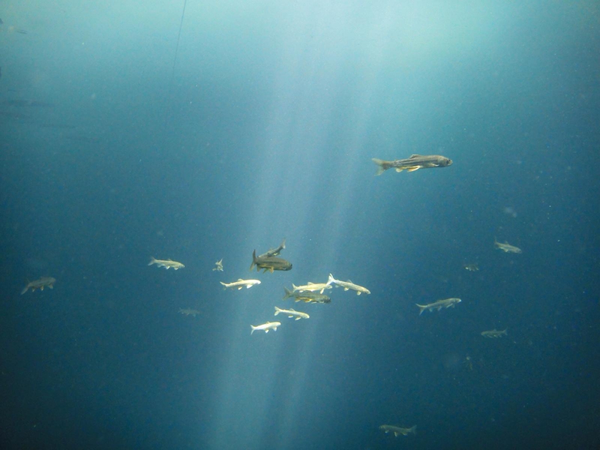 Doch nun endlich zum Kern der Geschichte, das Eistauchen. Es war einfach eindrücklich! Natürlich war es eine kleine Materialschlacht mit viel Schlepperei. Selbstverständlich ist man nervös und der Gedanke an eine geschlossene Eisdecke über dem Kopf kann beunruhigend wirken. Und zweifellos war es bei 2°C Wassertemperatur eisig kalt. Aber sobald man den ersten Kälteschock überwunden hatte und in die mystische Parallelwelt unterhalb der Eisdecke abgetaucht war, gab es nur noch das weissblau schimmernde Eis und das Lichtspiel. Die Nervosität war dem Staunen gewichen. Ich konnte mich kaum sattsehen an den tanzenden Sonnenstrahlen rund um das Einstiegsloch oder den spiegelnden Luftblasen, die sich an der Eisdecke sammelten und sich fliessend Richtung Ausstieg bewegten. Die wenigen Fische im Lac Lioson versammelten sich stimmungsvoll und wie bestellt im Lichtkegel. Einfach magisch!